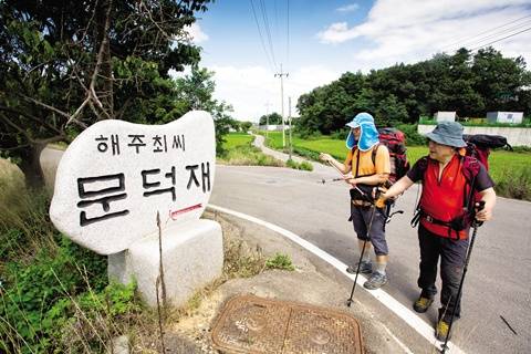 한낮의 대지는 그야말로 이글이글 타올랐다. 하늘이 원망스러울 정도로 뜨겁고 더운 날씨였다. 고갯마루 북쪽 한남정맥을 차지한 군부대를 우회해 한남정맥에 올라서는 것부터 만만찮았다. 경험자 말대로 부대 남쪽 도로를 따르다가 통진에너지 삼거리에서 왼쪽 길로 접어든 다음 문배주양조원 삼거리 오른쪽 길로 해주최씨 사당인 문덕재(文德齋)에 도착했으나 관리인은 길목을 막아서면서 "사당 안으로 들어서지 말고 저 아래 공장을 끼고 오르는 길을 따르라" 하는 바람에 접근로는 더욱 길어졌다.