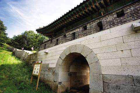 ↑ [월간산]문수산 능선을 따라 이어지는 문수산성. 조선말 병인양요 때 프랑스 군과의 격전이 벌어졌던 역사의 현장이다. |