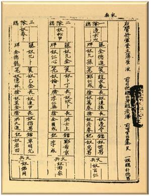 | 류성룡이 만든 속오군의 '관병편오책'. 소대장에 해당하는 대총에 노(奴:종) 송이(松伊)·춘복(春卜) 등의 이름이 보여 노비들의 신분 상승이 이루어졌음을 알 수 있다. | ||