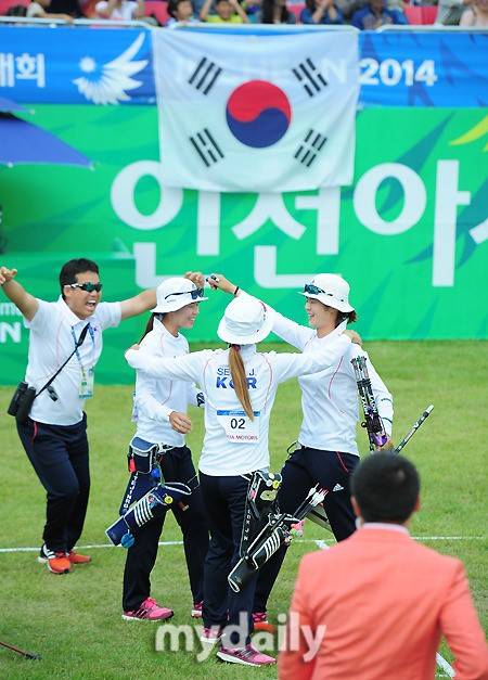 [한국 최보민, 김윤희, 석지현이 '2014 인천아시안게임' 양궁 컴파운드 여자 단체 결승전 대한민국과 대만의 경기에서 금메달을 따낸 후 기뻐하고 있다. 사진 = 마이데일리 DB]기사 제보 및 보도자료 press@mydaily.co.kr- NO.1 뉴미디어 실시간 뉴스 마이데일리( www.mydaily.co.kr) 저작권자 ⓒ 마이데일리. 무단전재&재배포 금지 -