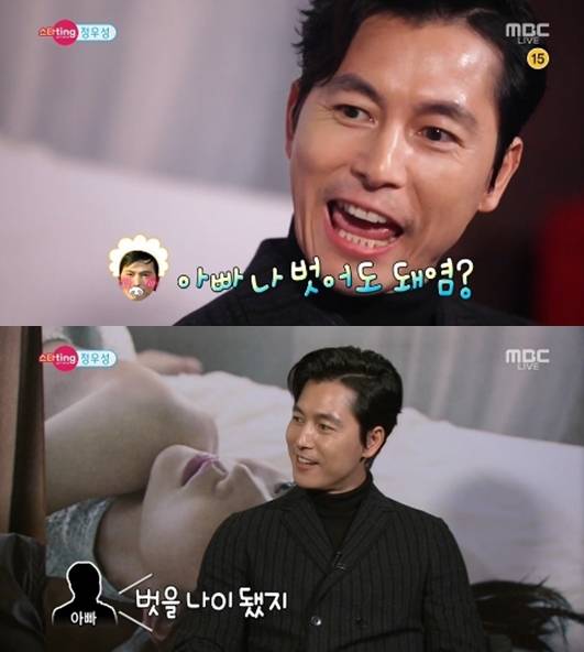 이어 정우성은 "아빠, 나 벗어도 돼요?"라고 물으니 "아버지는 '그래. 벗을 나이 됐지'라고 했다"고 말해 웃음을 자아냈다.