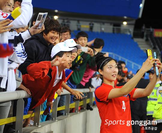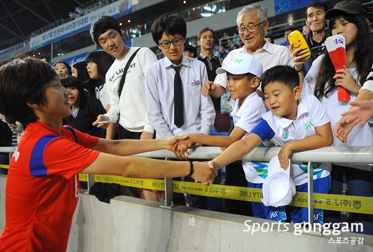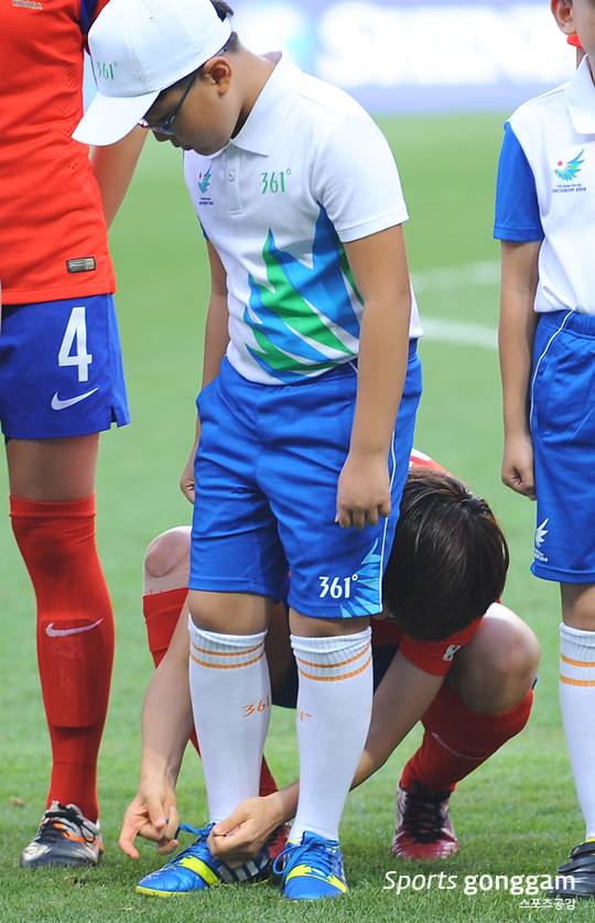 선수입장 후 허리를 숙여 에스코트 어린이의 축구화 끈을 묶어주던 여자 축구대표팀 김도연. 그녀의 갑작스런 친절에 오히려 에스코트 어린이가 당황한 모습이었다. 그리고 이날 경기에서는 종료 후에도 수많은 따뜻한 손을 볼 수 있었다.