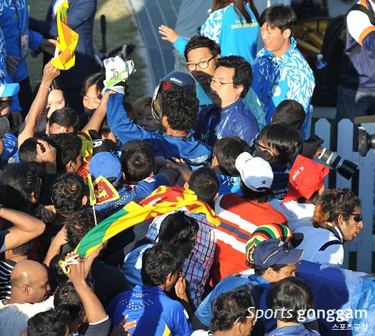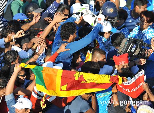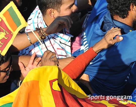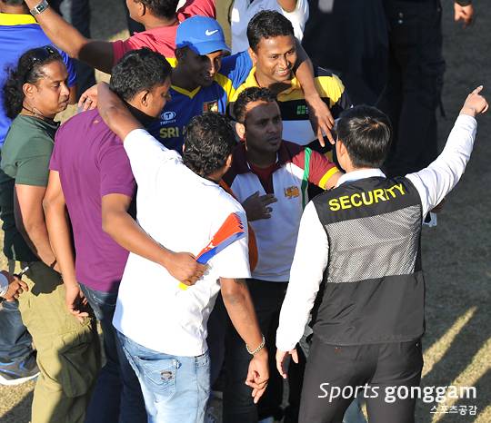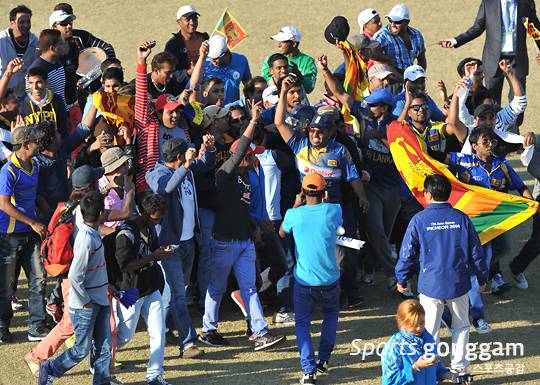 경기내내 열정적인 응원을 펼친 스리랑카 팬들이 기쁨을 주체하지 못하고 그라운드에 난입한 것이다. 사방에서 동시다발로 난입이 일어나자 경기장을 지키던 안전요원도 속수무책이었다 .
