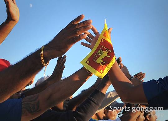 스리랑카 팬들은 힘을 합쳐 선수를 벤치로 옮기고 있었다.