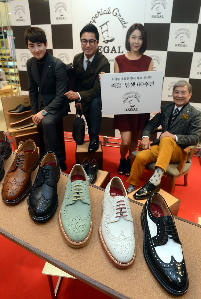 금강제화가 6일 서울 금강제화 명동 본점에서 신사화 '리갈(Regal)' 출시 60주년을 기념해 20대부터 60대까지 세대별 한국 남자의 멋을 표현하는 이색적인 행사와 함께 스페셜 에디션 7종을 선보이고 있다.사진=김범석기자