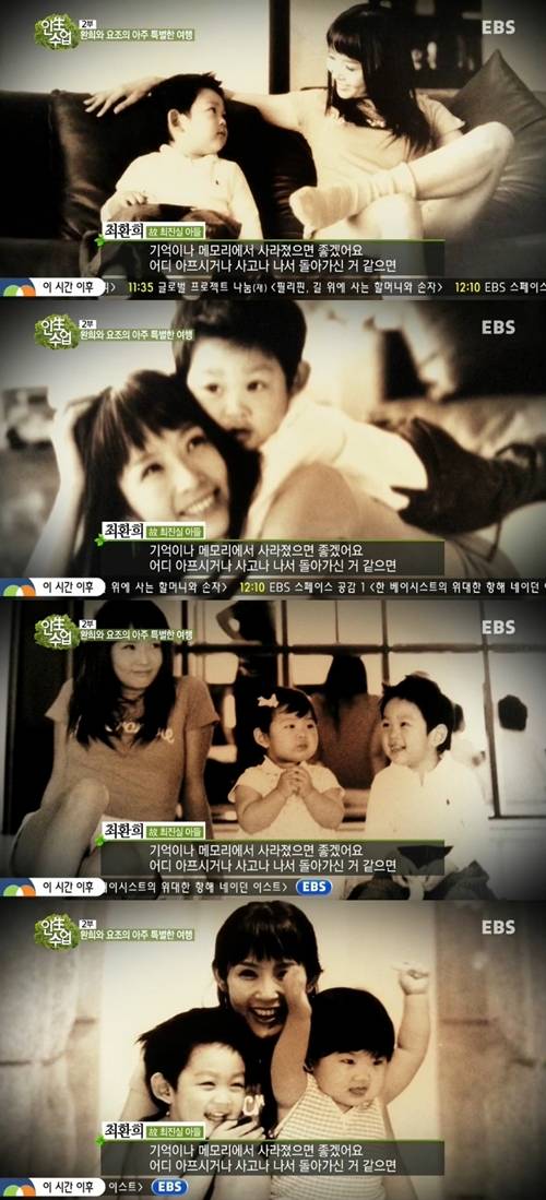 한편 이날 환희 고백과 함께 환희의 어린시절 모습과 엄마 고 최진실과 함께 찍은 사진이 공개됐고 행복한 미소를 짓고 있는 두 사람 모습이 보는 이들의 마음을 애잔하게 했다.(사진=EBS '인생수업' 환희 어린시절 고 최진실과 함께찍은 사진 캡처)