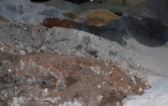 | ▲ 시멘트공장에 가득 쌓여 있는 소각재, 각종 공장의 오니, 하수 슬러지, 석탄재, 폐주물사 등 불에 타지 않는 쓰레기들입니다. 이것들을 폐타이어, 폐고무 등의 불에 타는 쓰레기와 혼합하여 소각돼 시멘트로 다시 태어납니다. |