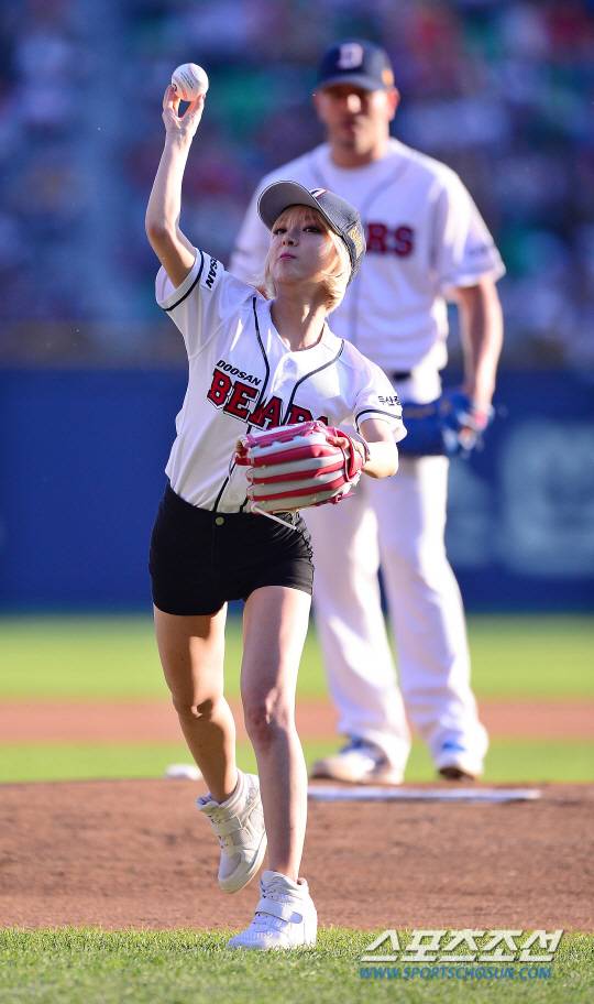 11일 오후 서울 잠실야구장에서 2014 프로야구 LG와 두산의 경기가 열렸다. 경기 전 AOA 초아가 시구를 하고 있다.