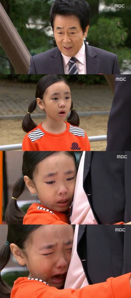 ▲ 왔다 장보리[TV리포트=김문정 기자] '왔다 장보리' 한진희가 김지영을 사랑으로 감싸 안았다.11일 방송된 MBC '왔다! 장보리'(김순옥 극본, 백호민 연출) 51회에서는 지상(성혁 분)이 동후(한진희 분)에게 사직서를 내미는 장면이 그려졌다.동후는 지상이 복수를 위해 회사에 들어왔다는 것과 재희를 이용했다는 사실에 분노했다.이에 지상은 민정의 악행을 막기 위해 어쩔 수 없는 선택이었다며 비단(김지영 분)은 아무 잘못이 없다며 받아달라고 애원했다. 하지만 동후는 지상의 부탁을 매몰차게 거절했다.이후 비단(김지영 분)이 준 사탕을 보며 생각에 잠긴 동후는 유치원으로 향했다. 비단은 그네에 앉아 울고 있었다. 동후는 왜 우냐며 누가 괴롭혔는지 당장 말을 하라고 다그쳤다.이에 비단은 할아버지를 와락 끌어안으며 "죄송해요. 엄마 아빠 딸인 것도 죄송하고 할아버지 예쁨받은 것도 죄송하고 그래도 할아버지랑 헤어지기는 싫으니까 그것도 죄송해요"라며 눈물을 쏟았다.동후는 "할아버지 마음 아프게 왜 울어. 비단이 잘못한 거 없어"라고 감싸 안아 뭉클함을 자아냈다.김문정 기자 dangdang@tvreport.co.kr / 사진= '왔다 장보리' 화면 캡처