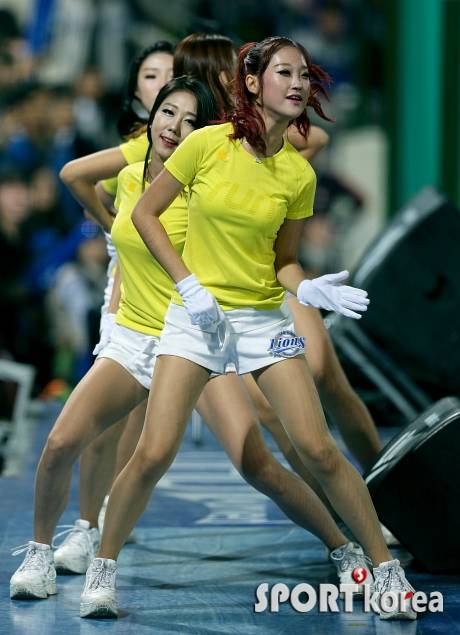 15일 오후 대구 시민야구장에서 열린 '2014 프로야구'삼성 라이온즈 대 LG 트윈스 경기 이닝교체 타임을 이용해 삼성 치어리더들이 멋진 공연을 펼치고 있다.