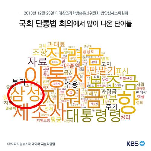휴대전화 신규 구매자들의 금전적 부담을 높였다는 비난 여론이 일고 있는 '이동통신단말장치 유통구조 개선에 관한 법률'(이하 '단통법') 법안 심의 과정에서 국회가 유독 삼성전자의 영업 정보 보호에 민감한 태도를 드러낸 사실이 KBS 데이터저널리즘팀 취재 결과 드러났다.