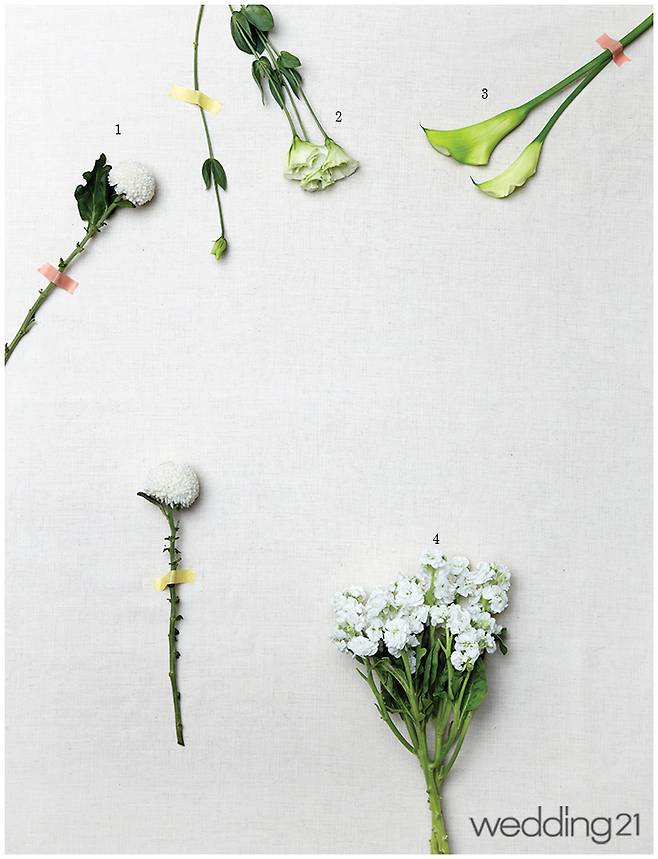 배우 김희선이 들었던 웨딩 부케의 꽃으로 잘 알려진 카라는'천년의 사랑'이라는 의미를 지닌 꽃. 순결과 우아함의 상징이기도 하다. 꽃대가 길어 머메이드라인 드레스에 매치하면 신부의 세련된 분위기를 더욱 배가한다.