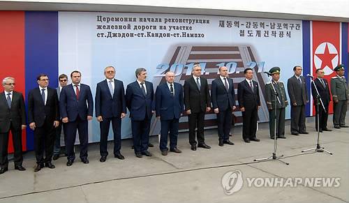 조선중앙통신은 21일 재동역-강동역-남포역으로 이어지는 철도의 개건 착공식이 동평양역에서 열렸다며 "조(북)·러 인민들의 공동의 발전과 이익에 부합되는 대규모 협조계획 실현의 첫 단계인 철도 개건이 두 나라 사이의 경제협조를 발전시키는 중요한 사업으로 된다"는 착공식 연설 내용을 소개했다.