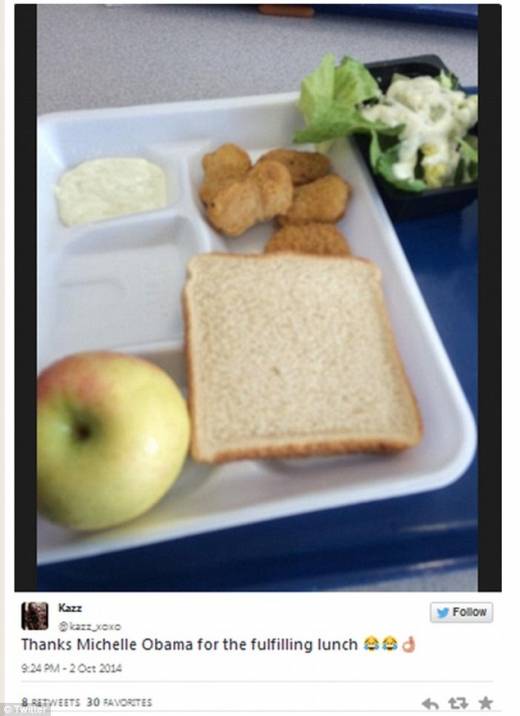 최근 오클라호마주 학생들이 올린 사진들을 보면 여전히 급식 논쟁이 끝나지 않았음을 보여준다. 한 학생은 사진과 함께 "식판을 가득 채워준 미셸 오바마에 감사한다"는 조롱의 글을 올렸으며 한 학부모는 "맛있는 급식을 위해 1달러라도 보태고 싶은 심정"이라고 트위터에 적었다.