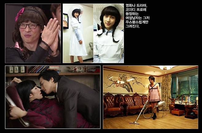 "다른 사람들 이야기를 들어보면 보통 어려서 엄마나 누나가 장난 삼아 여자 옷을 입혔다든지, 연극이나 무도회에서 여장을 하면서 어떤 감정을 느꼈다고 하는 경우가 많더라.