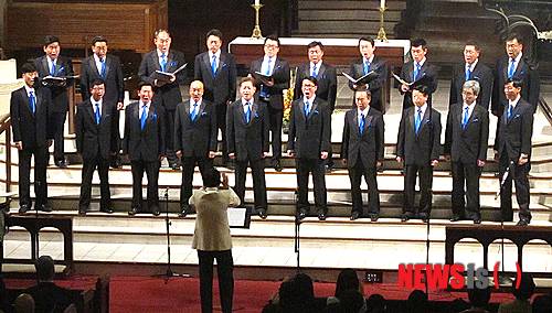 【L.A(미국)=뉴시스】김운영 편집위원 = LA 숭실 OB 남성합창단(단장 고진설) 정기연주회가 지난 26일(현지시각) 미국 LA 월셔 감리교회에서 열렸다.