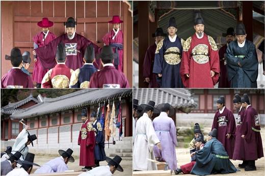 공개된 사진 속 영조는 박문수(이원종)의 만류에도 관아의 문을 열고, 균역법 제정 소식을 듣고몰려든 유생들과 직접 대면하고 있다. 그들은 관에 도끼를 내려찍는 등 단호한 태도로 균역법 반대 입장을 표하고 있고, 그에 맞선 영조와 이선, 채제공(최원영), 박문수 등은 당혹감을 감추지 못하고 있다.