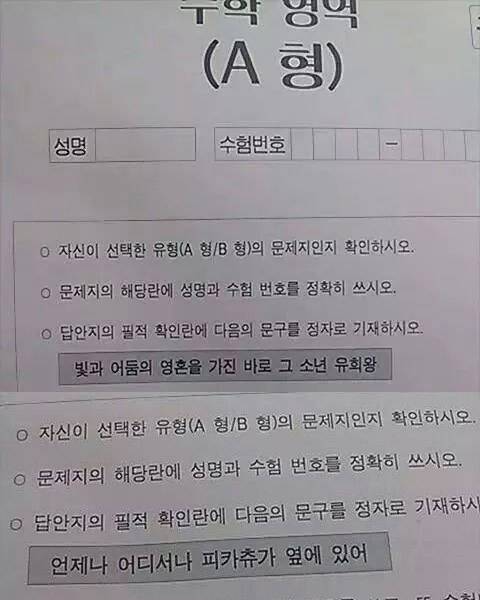 수능 필적 확인란에 '피카츄' '롤' '유희왕' 등장? 사실은..