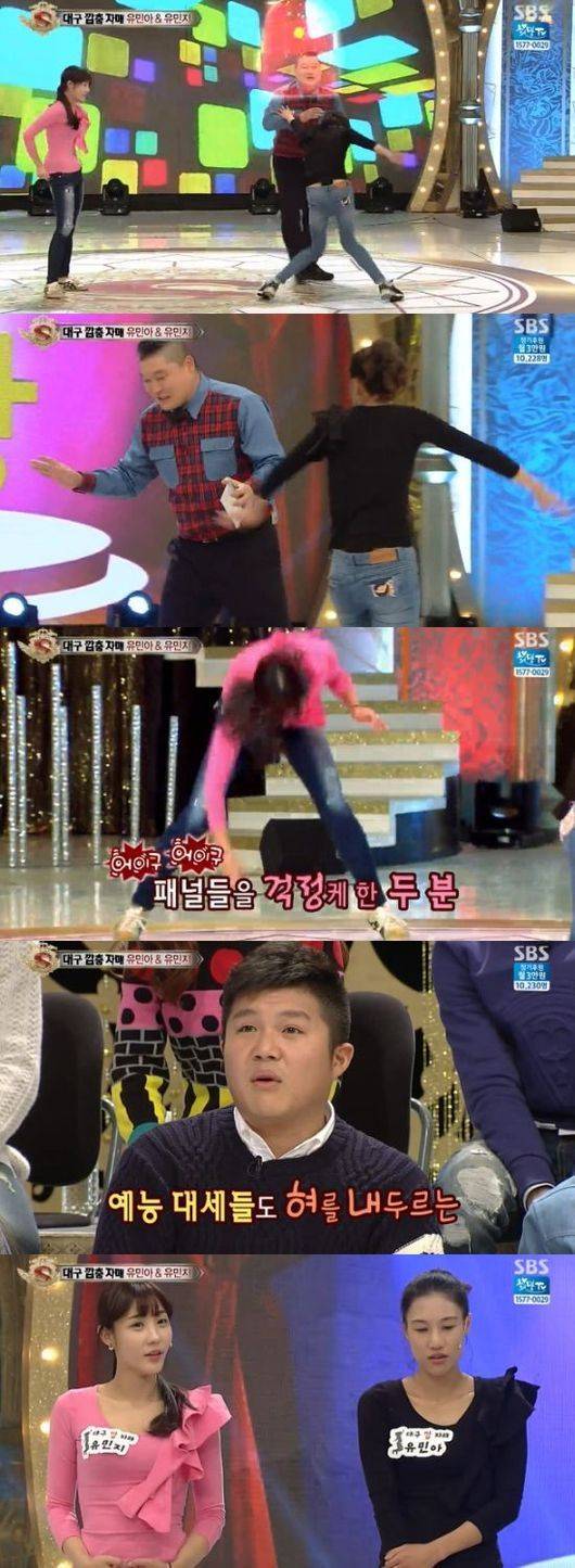유민아, 유민지 자매는 연약하고 다소곳하게 등장해 코믹한 춤을 선보였다. 이러한 반전에 강호동을 비롯한 패널들은 모두 놀란 표정으로 이를 바라봤다.