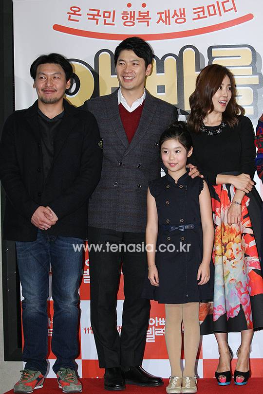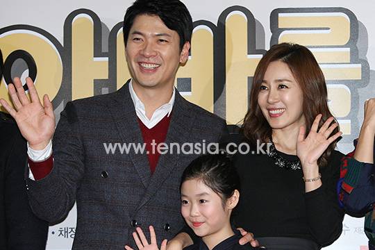 배우 김상경, 최다인, 문정희가 18일 오후 서울 자양동 롯데시네마 건대입구에서 열린 영화 '아빠를 빌려드립니다' VIP 시사회에서 포토타임을 갖고 있다.