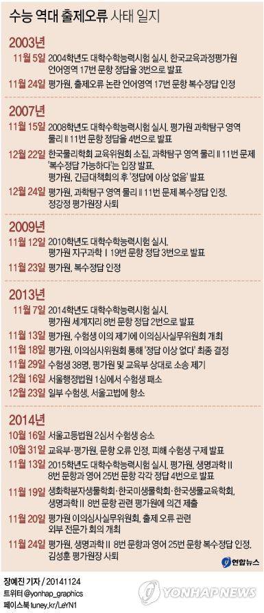 교육부는 출제오류가 연이어 발생함에 따라 다음 달 중 가칭 '대학수학능력시험 출제 및 운영체제 개선위원회'를 구성해 문제점을 진단하고 개선안을 마련할 계획이다.