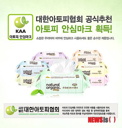 네츄럴오가닉 아기물티슈 관계자는 "유기농 인증을 받은 신선한 원료로만 제작돼 아기피부에 염증이나 발진 등의 피부질환 염려가 없는 순한 아기물티슈로 입소문이 났다. 항균인증 포장지와 캡, 물티슈 원단은 국내에서 유일하게 항균S마크를 획득했다"고 밝혔다.