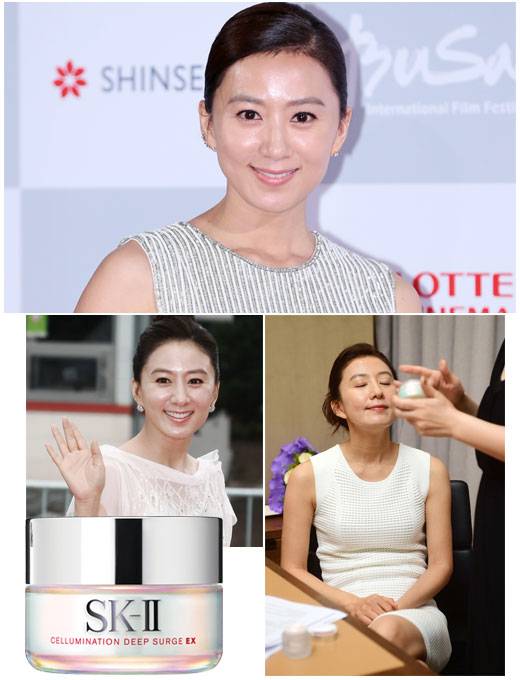 또한, 지난 7월25일 중국 상해에서 열린 미디어 컨퍼런스에 참석한 김희애의 대기실 사진도 화제가 된 적 있다. 레베카 밍코프의 화이트 원피스를 입고 대기실에서 메이크업을 받은 그는 이 날도 꿀광 피부로 만들어주는 '셀루미네이션 딥서지 EX'를 놓치지 않았다.(사진출처: bnt뉴스 DB, KBS 2TV '해피투게더' & '슈퍼맨이 돌아왔다' 캡처, SK-ll, 레베카밍코프)