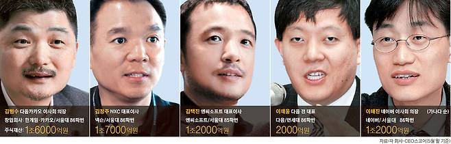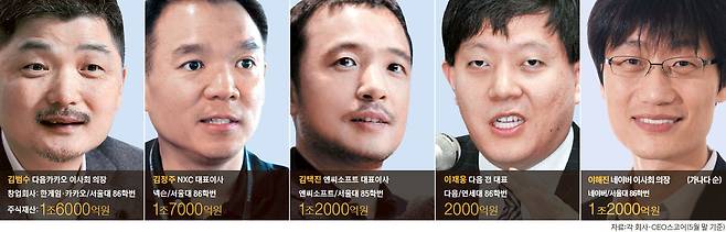 27일 정보기술(IT) 업계에 따르면 김범수(47) 다음카카오 이사회 의장과 김정주(47) NXC 대표, 김택진(48) 엔씨소프트 대표, 이재웅(46) 다음커뮤니케이션 창업자, 이해진(47) 네이버 의장 등 5명은 지난 5월 유한회사 'C프로그램'을 설립했다. 사회적으로 의미 있지만 재정이 열악한 기업·단체·비영리기구를 발굴하고 육성하는 벤처자선(Venture Philanthropy)을 시작하기 위해서다.