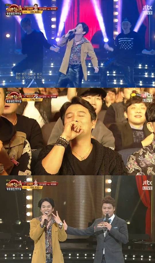 29일 밤 방송된 종합편성채널 JTBC '히든싱어3' 왕중왕전에서는 A조 1위 '수영강사 박현빈' 김재현, B조 1위 '나이트클럽 환희' 박민규, C조 1위 '발전소 이승환' 김영관과 시청자들의 선택을 받은 와일드카드 '성수동 이재훈' 임재용이 생방송 파이널 라운드에 나섰다.