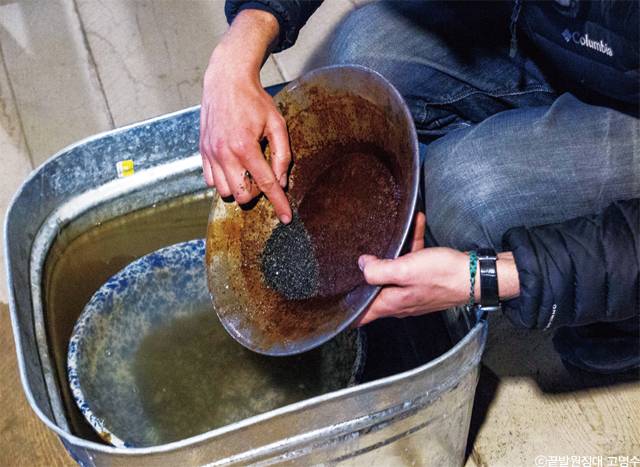 골드러시 시대 보난자 크리크가 실제 채굴하는 데 사용했던 배 안에서 채금 체험을 했다