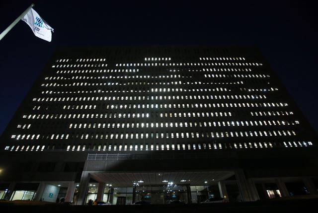 8일 저녁 정윤회씨의 국정개입 의혹과 청와대 문건 유출 사건을 수사하는 서울 서초동 서울중앙지검 사무실에 늦게까지 불이 켜져 있다. 왕태석기자 kingwang@hk.co.kr