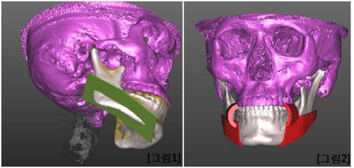 중앙대학교병원 턱얼굴클리닉에서 개발한 기술은 환자의 턱뼈가 좌우 대칭이 잘 맞는 브이라인이 되도록, 신경이 다치지 않도록 시뮬레이션 수술을 컴퓨터 상에서 시행한다. (그림1) 그리고 설정한 뼈 절제선을 실제로 아랫턱 뼈에 표시 할 수 있는 장치를 3D 프린터로 제작한다.