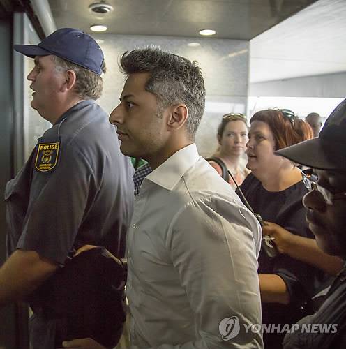 epa04521319 British businessman Shrien Dewani (C) is escorted by South African police as he makes his way through Cape Town International airport prior to his departure from Cape Town to Dubai en route to the UK, 09 December 2014. Judge Jeanette Traverso 08 December 2014 dismissed the case against Shrien Dewani who was accused of masterminding the murder of his wife Anni during a staged car-jacking on their 2010 honeymoon. EPA/STR