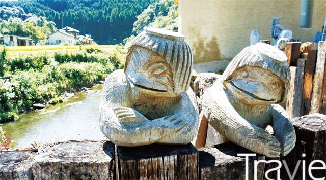 기분 좋게 마신 술은 뒤끝이 없었다. 호빵맨에 이어 이번에는 피규어로 가득한 기차를 타고 여정을 이어 간다. 피규어 제조사 '카이요도'의 피규어를 기차 안팎에 디자인한 카이요도 하비 트레인. 시만토강을 끼고 산허리를 돌아나가는 기찻길은 창가에 바싹 붙어 앉게 했다. 기차에서 내려 카이요도의 피큐어 컬렉션을 모아 놓은 카이요도 하비관과 일본의 전설 속 요괴 '갓파' 조형물을 전시하고 있는 갓파관까지 두루 둘러본다. 그리고 시만토강이 내려다보이는 휴게소에 들러 지역 특산물로 정성스레 조리해 꽃모양 바구니에 소복하게 담아 주는 '도오와 가고젠'으로 꼬르륵 하는 배꼽시계를 달랜다. 소박하지만 맛깔스런 밥상이었다.