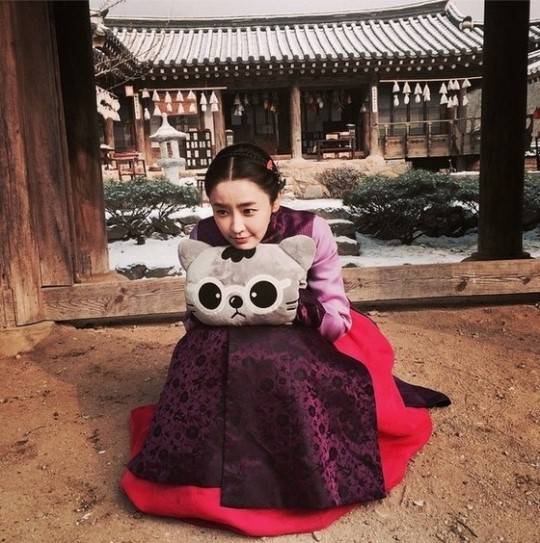 공개된 사진 속 정유미는 '하녀들' 촬영 현장에서 인형을 꼭 끌어안고 어딘가를 응시하고 있다. 정유미의 양반집 규수 같은 단아한 자태와 한복의 화려한 색감이 눈길을 끈다.