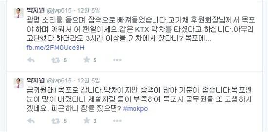 언제부턴가는 트위터에 금귀월래 일정을 실시간으로 보고하기 시작했다. 금요일 저녁에 목포로 출발하는 순간부터 서울에 돌아오는 때까지의 동선이 그의 트위터 계정(@jyp615)에 기록돼 있다.