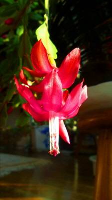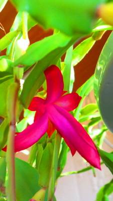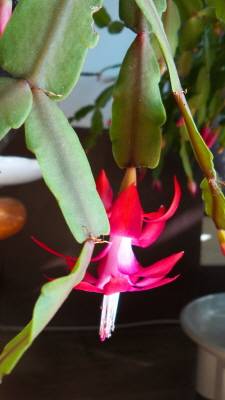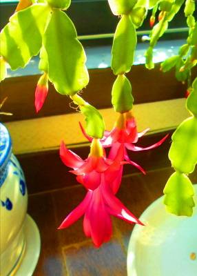 이름이야 어떻든 내가 보기에는 이 꽃은 꼭 바다에서 자라는 게의 발처럼 생긴 잎 끝에서 피어난다. 그러니 총체적으로는 게발 선인장이라 말이 맞을 것 같다. 특별히 크리스마스 선인장이라고 부르는 이유는 이 꽃이 크리스마스를 전후해서 피어나기 때문이란다.