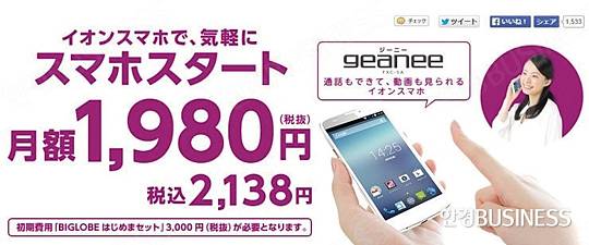 통신비가 부담스러운 수요자에게 맞춤형 저가 스마트폰은 반가운 선택이다. 선두 주자는 편의점 업체인'이온'이다. 4월 8000대 한정 판매를 내걸며 히트를 치자 경쟁이 치열해졌다. 월3000엔 정도로 대형 업체(최소 6000엔)보다 월등히 싼 가격이 경쟁 원천이다. 계약정보를 기록한 IC카드(SIM카드)와 단말기를 기존 메이커처럼 현장에서 제공·개통해준다. 데이터속도는떨어진다.
