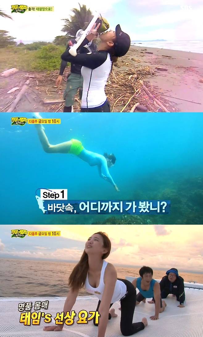 또 방송말미 공개예고에서 역시 이태임은 수중에서 인어 못지않은 수영실력을 뽐내는 것과 우월한 몸매 비결로 알려진 요가 하는 모습이 연달아 공개되며 시청자 시선을 단번에 사로잡았다.(사진=SBS '정글의 법칙 in 코스타리카' 명품몸매로 오프닝과 엔딩 책임진 이태임 캡처)