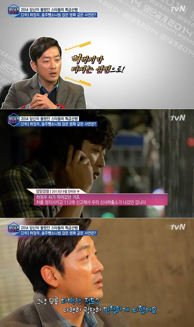 하정우는 12월29일 방송된 tvN '명단공개 2014' 당신이 몰랐던 스타들의 특급선행 특집에서 2위로 선정됐다.