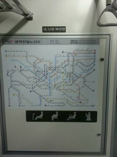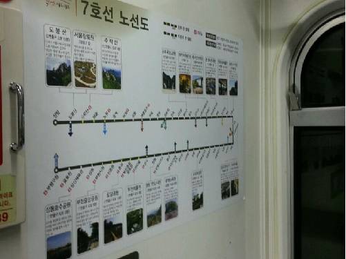 [서울]지방에 갈 일이 있을 때 고속버스터미널로 이동하기 위해 간간히 이용하게 되는 서울지하철 7호선. 자주 이용하지 않는 노선이다보니 탑승과 함께 출입문 위에 붙어있는 노선도를 버릇처럼 올려다보게 된다. 하지만 시력도 좋지 않는 데다 키를 훨씬 넘는 높이에 설치된 노선도를 살펴보는 일은 꽤나 번거로운 일이다.물론 요즘은 스마트폰을 통해 쉽게 노선도를 확인해 볼 수 있긴 하지만, 스마트폰을 사용하지 못하는 노인 분들의 경우 2m 가량 높이에 설치돼 있는 작은 글씨의 노선도에 의지할수밖에 없었고 이용이 곤란할 때에는 주변 사람들에게 도움을 요청할수밖에 없다. 더욱이 휠체어를 이용하는 몸이 불편하신 분들이나 어린이들이 출입문 위에 설치돼 있는 노선도를 확인하기란 더욱 쉽지 않다.