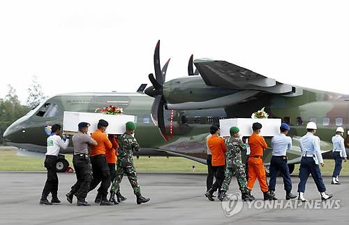 epa04549148 Indonesian officers carry two coffins with AirAsia plane crash victims, before they are sent to Surabaya for identification, during the search and rescue operation for the crashed AirAsia plane at Iskandar Military Airport in Pangkalan Bun, Central Borneo, Indonesia, 07 January 2015. Searchers are racing against time to find the cockpit voice and flight data recorders, which could shed light on what went wrong with the flight. The aircraft did not send a distress signal before it disappeared from radar screens on 28 December 2014 on a flight from Surabaya, Indonesia to Singapore witn 162 people on board. EPA/BAGUS INDAHONO EPA/BAGUS INDAHONO
