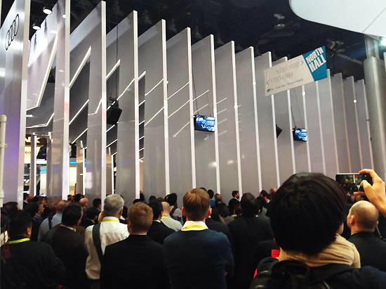 이날 오전 10시 30분 경부터 CES 키노트를 시작한 아우디 주변 전시장에는 수백명의 관람객이 모여들어 아우디 혁신에 눈과 귀를 고정시켰다. 관람 인파가 순식간에 모여들어 전시장 내로 입장이 불가능해지자 벽면에 걸린 TV화면으로 키노트를 시청하는 관람객도 많았다.