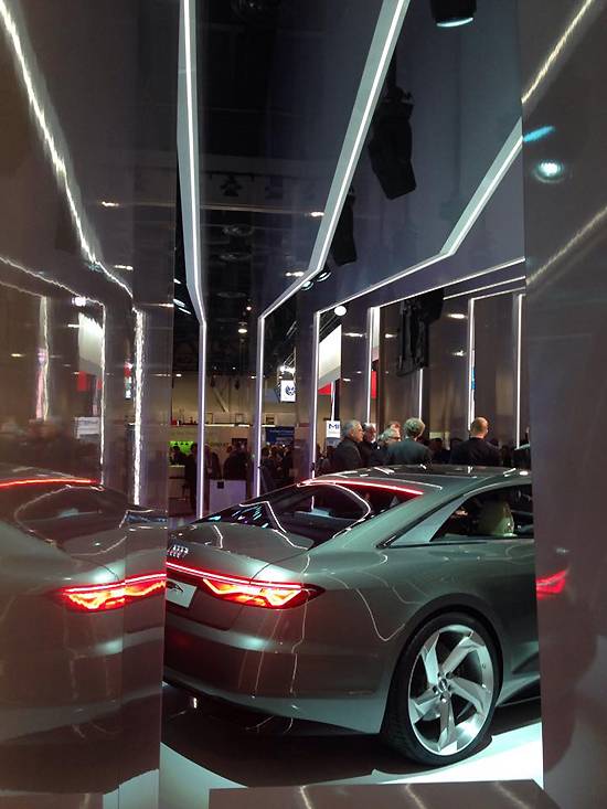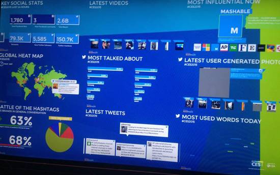 프리미엄 자동체 업체 아우디가 내놓는 스마트카 혁신에 전세계 온라인도 들썩였다. 센트럴 홀 중앙 소셜미디어센터 전광판에는 하룻동안 트위터 및 페이스북에 게시된 CES 관련 반응을 수치로 일목요연하게 정리해 보여줬는데 개막과 함께 SNS 상에서 가장 많이 언급된 있는 회사는 아우디였다.