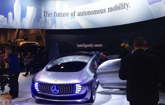 독일 메르세데스벤츠는 자체 개발한 자율 주행 차량 'F015 럭셔리 인 모션'을 선보였다. 디터 체체 벤츠 회장은 전날 CES 기조연설을 통해 "운전자가 자신의 차량 안에서 운전하지 않고 자유롭고 싶은 꿈이 이뤄졌다"며 이 신기술을 자랑했다. 이어 "요즘 현대인이 가장 많은 시간을 보내고 싶어하는 공간은 차 안"이라며 "자동차는 움직이는 집이 될 것"이라고 장담했다. 럭셔리 인 모션는 특유의 미래지향적 디자인으로 카메라 세례를 받았다.