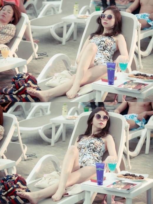 '하트투하트' 측은 10일 공식 SNS에 소희의 사진을 게재했다. 소희는 플라워 패턴의 탱키니(탱크톱+비키니)를 입고 특유의 도도한 매력을 발산했다.