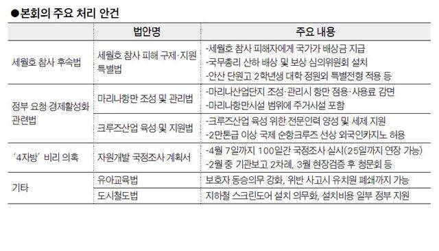 세월호 배보상법, 크루즈ㆍ마리나법 등 처리