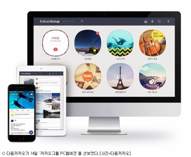 [정은미기자] 다음카카오(공동대표 최세훈 이석우)는 PC에서 카카오그룹에 글을 작성하거나 사진과 동영상 등 각종 파일 첨부가 가능한 '카카오그룹 PC웹버전'을 선보인다고 14일 발표했다.