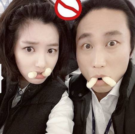 사진 속에서 이유비는 민성욱과 똑같은 헤어밴드와 찌푸린 인상을 선보였다.