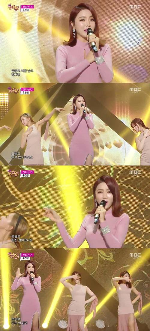 1월 17일 방송된 MBC '쇼 음악중심'에서 홍진영이 '산다는건'을 열창했다.